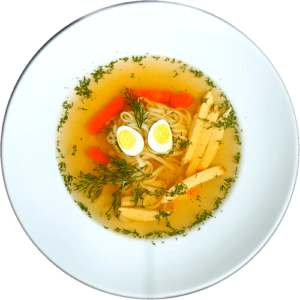 Наваристий бульйон з курки з додаванням локшини Удон.